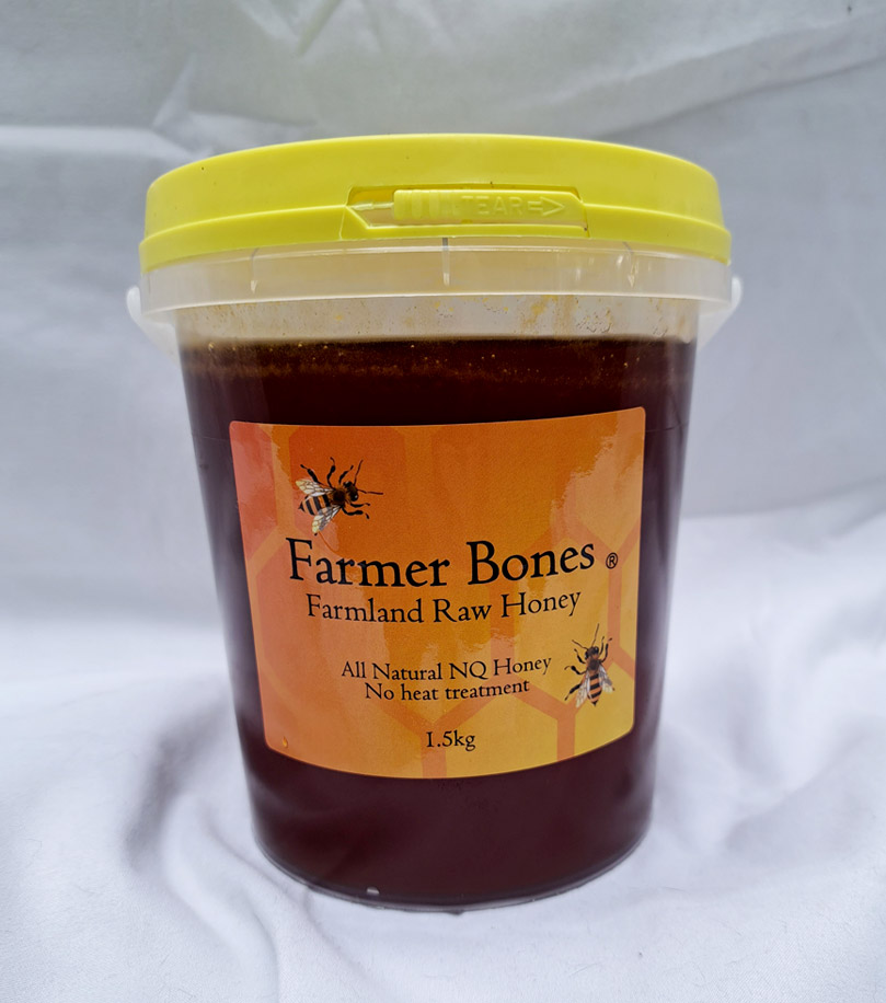 At Farmer Bones Farmland Raw Honey we provide a high-quality product, with a combination of seasonal crops and seasonal bushland blossoms. Our bees work very hard to produce good quality honey and farmer’s bones is out most weekends robbing and checking the hives.